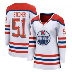 Women Oilers Troy Stecher Authentic 2025 Stanley Cup Final Reverse Retro White