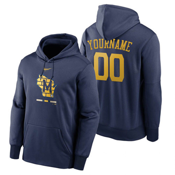 Home Milwaukee Brewers Custom Men Brewers Custom Pullover Hoodie Navy