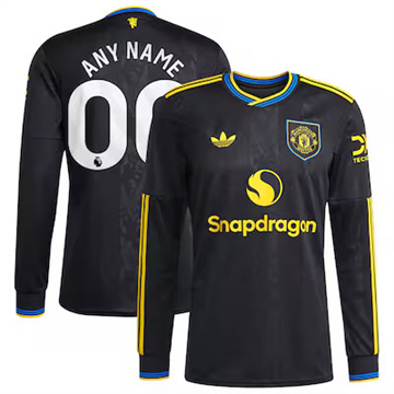 Men Manchester United Custom Jersey 2025/26 Long Sleeve Third Black