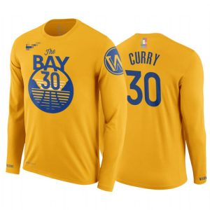 Men Stephen Curry T-Shirt Long Sleeve Gold $25.00